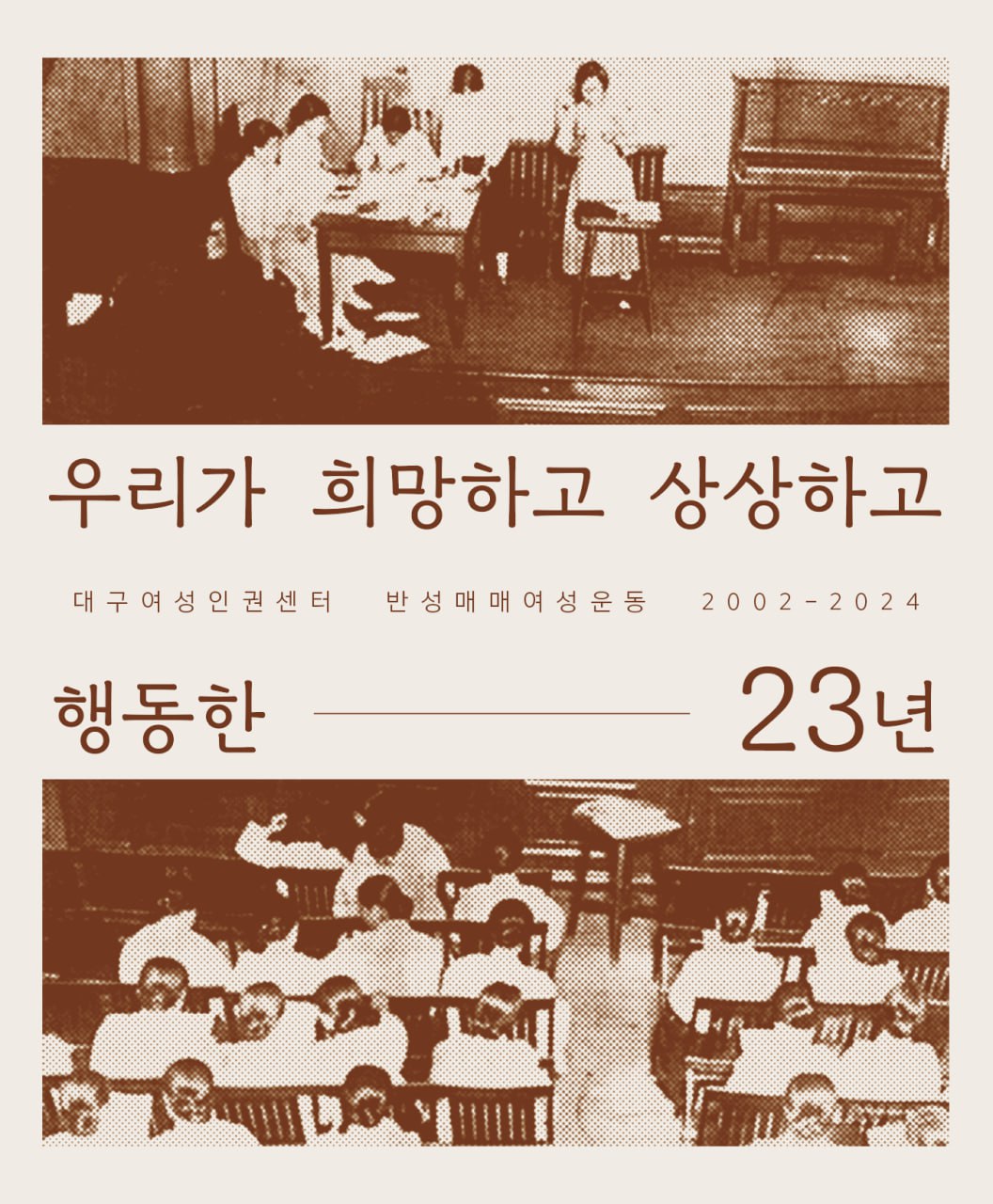 성매매없는 세상, 우리는 희망합니다. 그리고 상상합니다, 그래서 행동합니다. 누군가의 쾌락을 위해 누군가의 몸이 돈을 매개로 팔리는 것, 우리는 그러한 세상을 원하지 않습니다. 하지만 우리는 끝없이 성찰합니다. 우리가 늘 옳을 것이라 판단하지 않습니다. 고정되고 화석으로 굳어진 신념이 아니라 늘 변화하고 움직이는 인간에 대한 감수성으로 희망하고, 상상하고, 행동합니다.